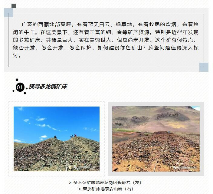 多龙矿业现拥有西藏自治区改则县多龙铜矿勘探、西藏自治区改则县多不杂西铜矿详查这两项探矿权。其中,多龙铜矿已进入“探转采”阶段,多不杂西铜矿目前正在推进详查工作。